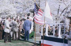 Abstract: On March 30, 1954, I got some colored photos during the celebration of the Cherry Blossom Festival in Washington, DC. It was a special event because, in that day, United States was receiving one old stone lantern given by the governor of Tokyo, to celebrate the friendship between the two countries.